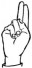 На ћирилици написано ВАЛЕНТИНА ЛУДОШКИ састоји се из 16 слова [?]. Исписано ћириличном једноручном азбуком за глувонеме: